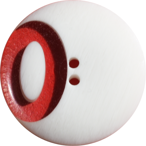 Dieser Knopf hat ein modernes Design durch seinen Material-Mix. Ein Bereich des Knopfes ist durchsichtig und je nach dem an welchem Kleidungsstück er angenäht ist scheint die Farbe durch.