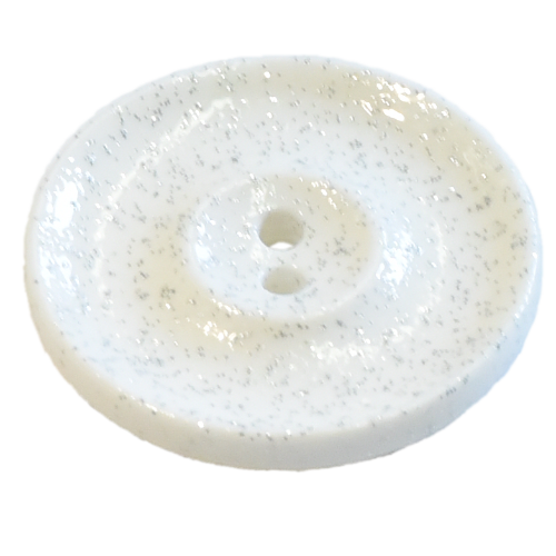 Der Knopf hat eine leichte geschüsselte Form wobei die Mitte etwas erhaben ist. Er hat ein dezentes Glitzermuster.